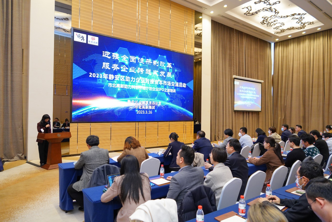 抢抓全面注册制改革机遇!市北高新携手区金融办举办助力企业对接资本市场活动 2023-03-19 3月16日,静安区金融办、市北高新联合举办“迎接全面注册制改革,服务企业跨越式发展”——2023年静安区助力企业对接资本市场交流活动暨市北高新助力科创引培计划企业IPO之旅培训,邀请深耕资本市场多年的业内知名专家学者,为50余家区内拟上市企业、市北高新园区科创引培企业的代表,解读股票发行注册制改革的内涵、要义。