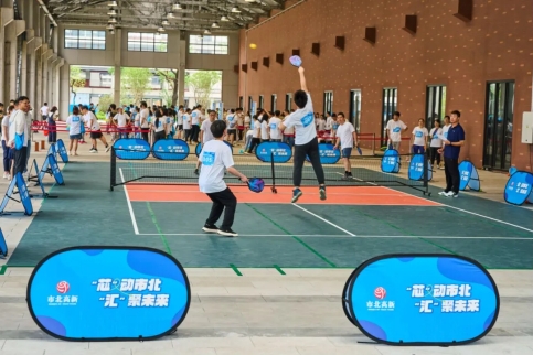本届运动会虽正值梅雨季节,但园区各企、事业单位的参与热情却丝毫不减,共有百余支队伍、近六百余名选手参与竞技。为带来一届好看、好玩的运动会,市北高新园区精心设置了贴合现代白领运动喜好的特色项目。比如,开幕后举行的匹克球比赛,运动员们展示出了高超的球技,每一次挥拍、每一次击球都引起观众的阵阵喝彩。
